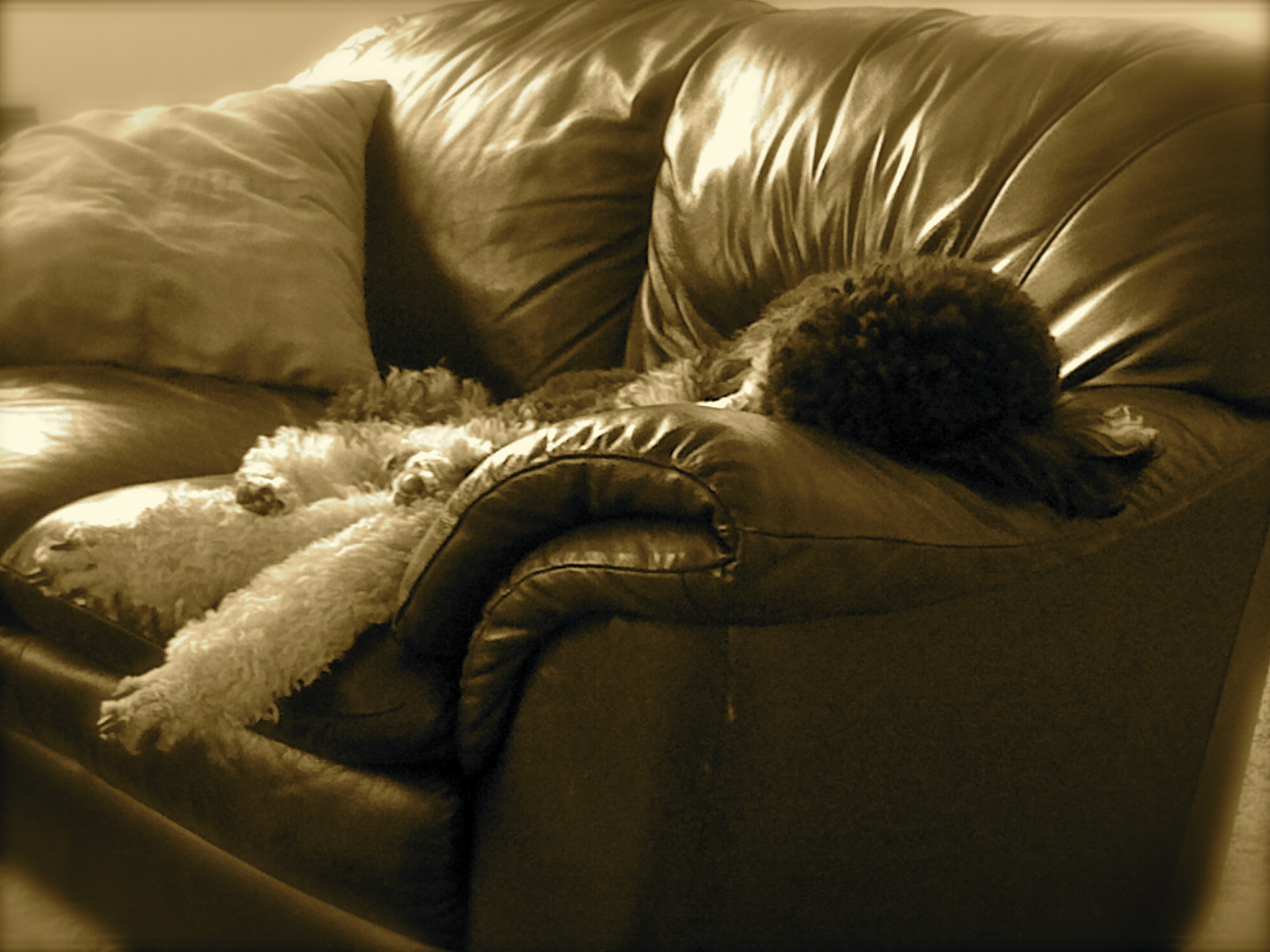 Lucy was Jamie's dog. Jamie is my husband's beautiful little sister. Lucy used to belong to Jamie. One day, Lucy had babies. One of the babies was Sandie. So Sandie's mom is Lucy. So Lucy is Sandie's mom. And they all live with us. Lucy and Sandie, not Jamie. Aren't you glad you have me here to explain these things to you?